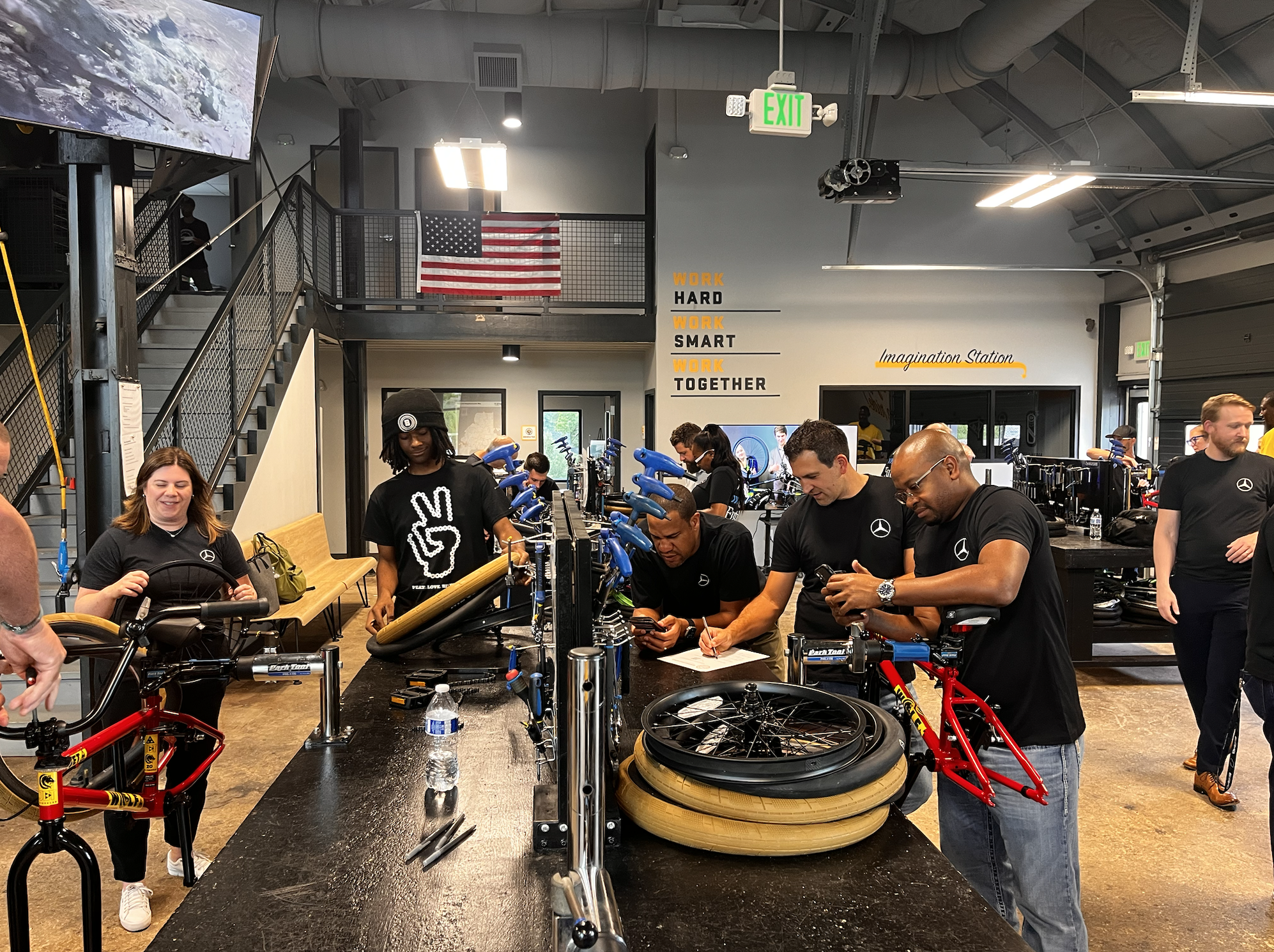 Bearings can accommodate groups of 10-40 in our space. We typically assign 3-4 team members to a bike. We can host builds Monday-Friday with several options for times during business hours.
